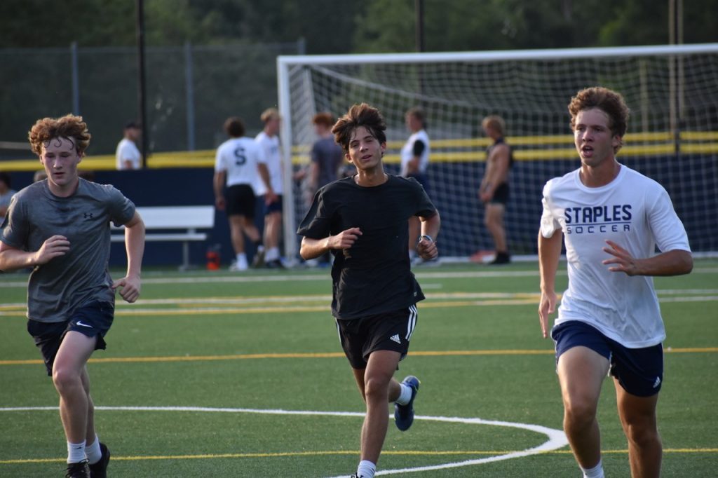 Head coach Russell Oost-Lievense welcomed the 10th-12th graders. He takes the reins, as only the 4th permanent head coach in Staples boys soccer history.