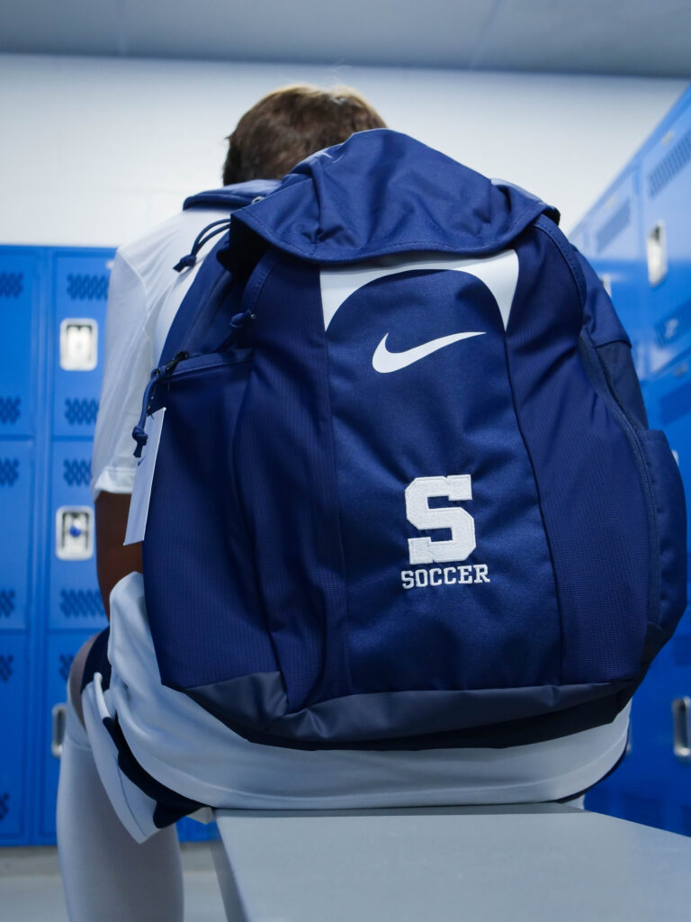 Players purchase a handsome package: 2 practice jerseys (white and blue), practice shorts (2 pairs), game socks (white and navy), and a Staples soccer backpack.