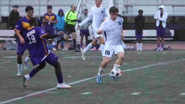 Wind, rain and a slick surface posed more of a challenge than Westhill for the Staples boys soccer team this afternoon, at J. Walter Kennedy Stadium in Stamford.