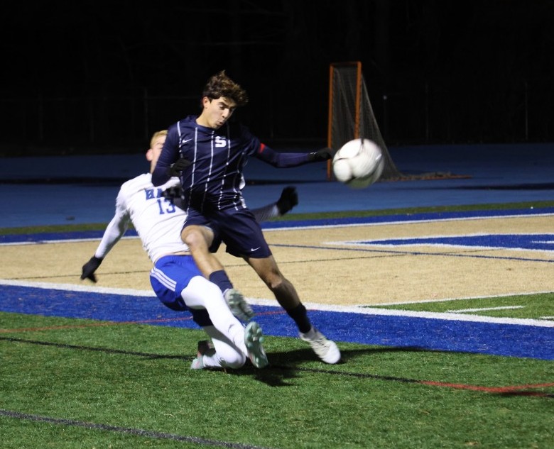 Despite slightly dominating the first half, and thoroughly taking charge after intermission, tonight’s state “LL” (extra large schools) semifinal between Staples and Hall-West Hartford was deadlocked 0-0 at Newtown High School’s frigid Blue Gold Stadium, with 23 minutes left in regulation time.
