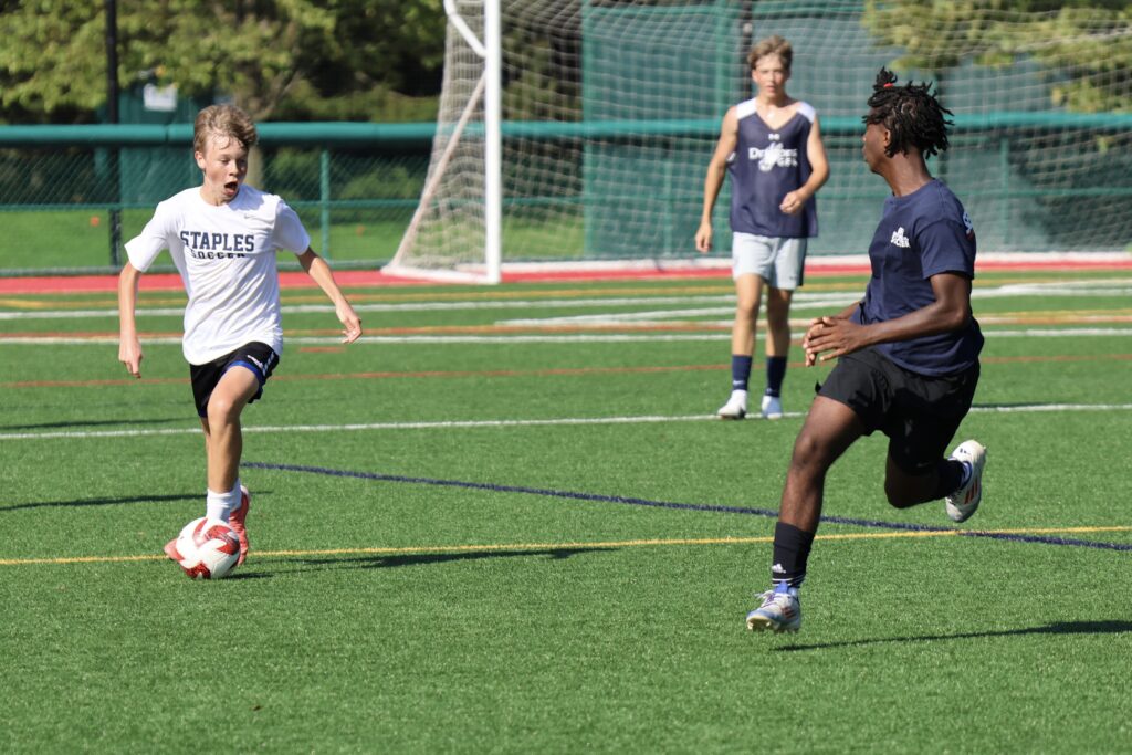 Four days after tryout began, the 2024 Staples boys soccer team opened with a decisive 3-0 scrimmage win at Greens Farms Academy.
