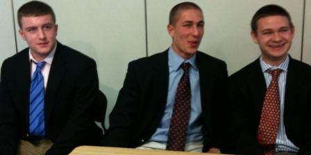 Brendan Lesch, Frankie Bergonzi and Greg Gudis enjoy the ceremony. Sean Gallagher was at an indoor track meet.