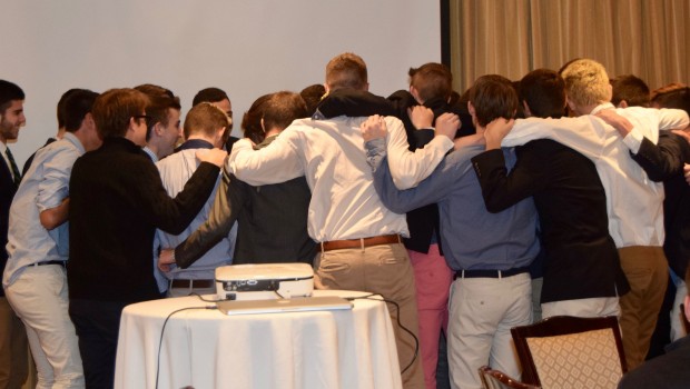 Captains Daniel Reid, Spencer Daniels, Josh Berman and Ziggy Hallgarten were poised, articulate and very impressive as they addressed the 200 attendees at the 2016 Staples boys soccer banquet.