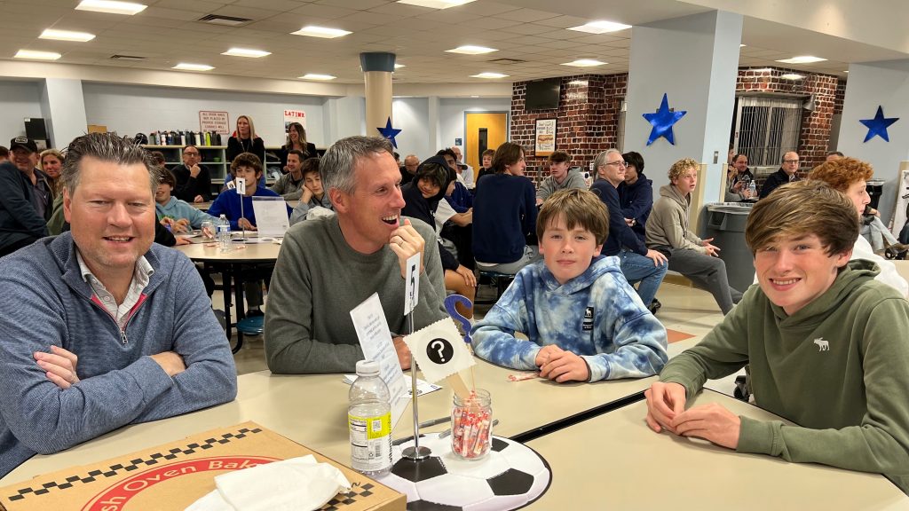But “Daddy Cregan” — the team of Lucas Carpi, James, Corridon, Jackson Cregan, Ben Douglas, Matt Shackleford, Adam Syah, Blake Watkins and Chase Watkins — outwitted more than 2 dozen other teams to capture first place (and a great prize basket at last night’s Staples Soccer Quiz Night.