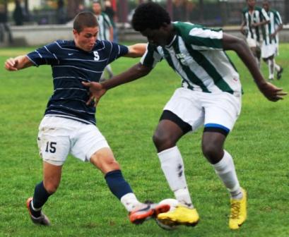 Frankie Bergonzi ’11’s 1st collegiate point was a big one. The defender’s 55th-minute flick-on of a corner kick led to a header goal. That was the only scoring, as Colgate edged reigning Patriot League champion 1-0.