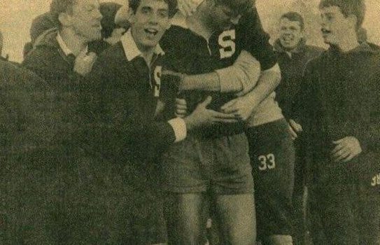 Celebrating the 1965 FCIAC championship. That’s Murray Rosenberg looking right at the camera.