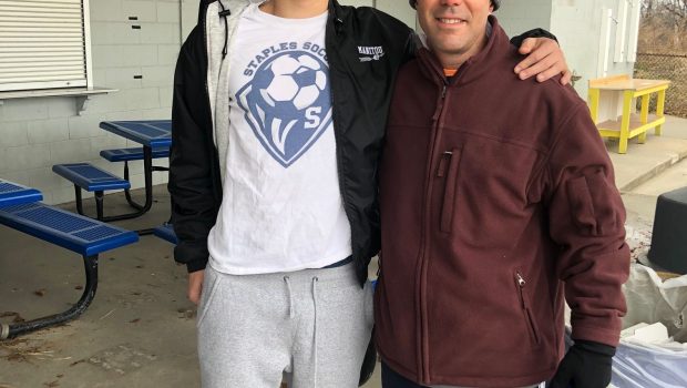 The sophomore soccer player (who trained with the varsity during post-season) is not crazy. He was just doing his part to raise money for Urban Impact of Bridgeport. Chris Myers ’83 — the Westport Elite assistant coach, who also coaches with Elite head coach Kevin Fitzsimmons at Weston High School — is executive director of the organization. It offers at-risk youth educational, mentoring and person opportunities in and out of school.