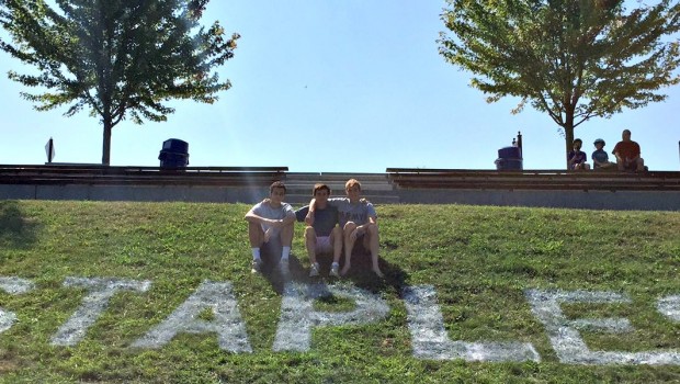 Josh Berman, Spencer Daniels and Timmy Liles volunteered their afternoon — and expertise — to stencil The Hill today.