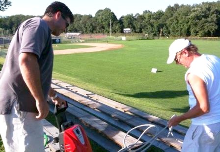 Parents Larry Hoy and Ned Hickok, plus rising junior Dylan Hoy, spent several hours this week cleaning the benches and granite at the Loeffler Field terrace.