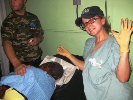 We worked at the main trauma center, Bernard Mev’s Hospital, in Port-au-Prince. The night this photo was taken we had an influx of patients from a political riot. I am suturing a lacerated ear.