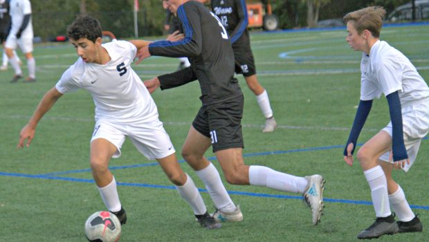 Matt Shackelford scored 2 minutes into the Darien game, for coach Chris O’Dell’s freshmen. Kyle Ambrose and Ethan Cukier scored before halftime; so did Joaquim Monerrat on a wind-aided corner kick. Shackelford finished the scoring. The final was 5-1. Josh Deitch controlled the middle of the field.