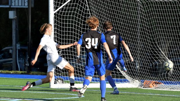 Staples responded. Thirteen minutes later Genser’s cross from the corner was punched away by keeper Will Lehan. The ball bounced around; Reese Watkins touched it forward, and Jaden Mueller finished from close range.