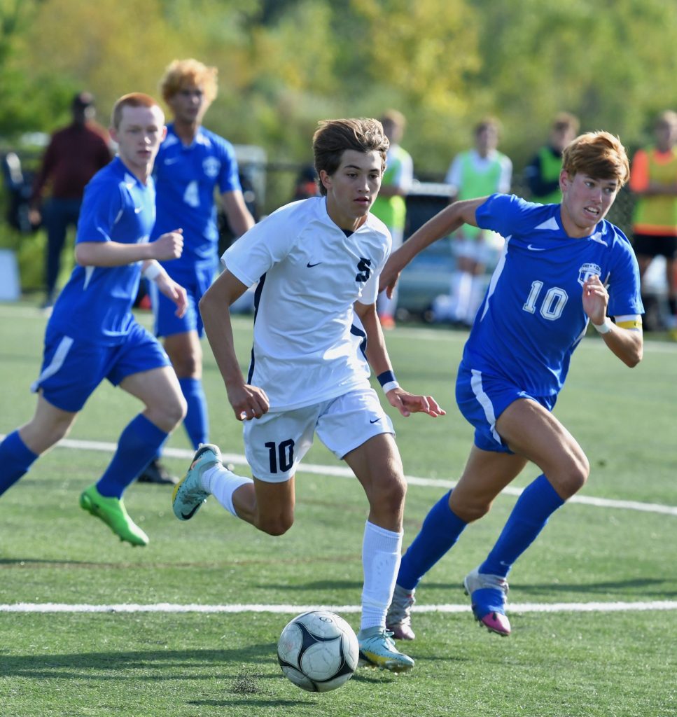 Though outsized midfielders Luca Escalante and Zack Gorin — both 10th graders — won their share of balls.