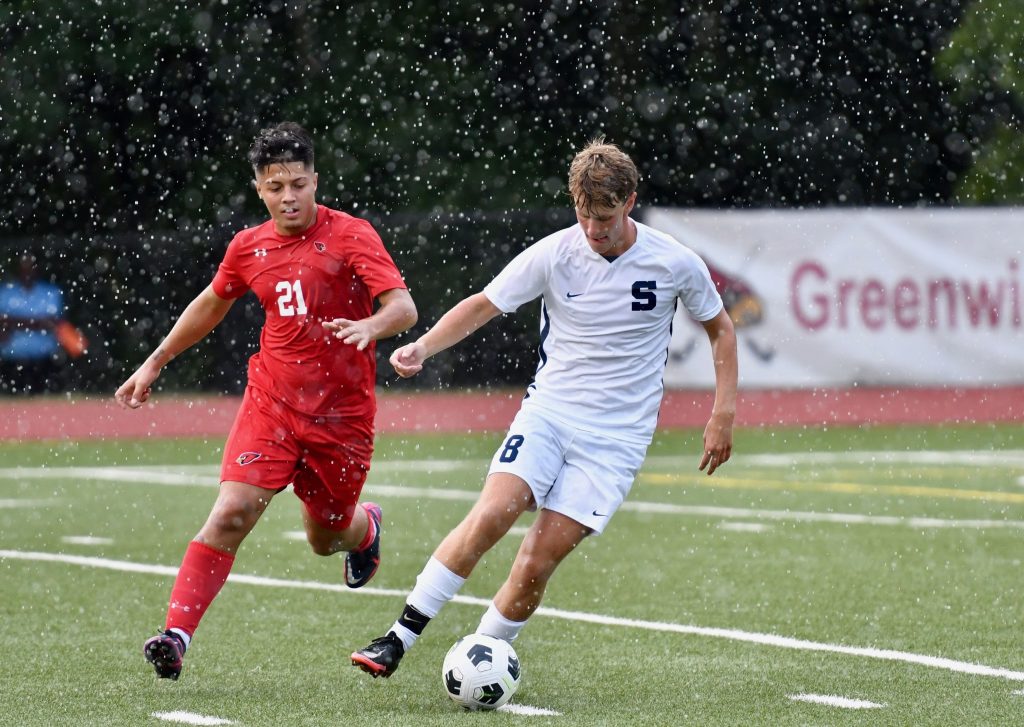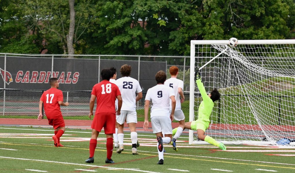 Greenwich’s first shot came in the 14th minute, off a give-and-go in the box. They attacked often on the right side, but defender Hunter Smith was solid there. Zach Beebe manned the right side well, in his first start. Ben Douglas and Cole Lieberman commanded the back line, catching the Cards offside several times.