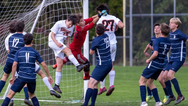 The Wreckers’ midfield was missing Jack Douglas. The co-captain is out for the season, following an ACL tear in the first half at Ridgefield. It’s his 2nd season-ending ACL injury; the first came last year, in the first 20 minutes of the opening contest at Central. Douglas also missed most of his sophomore varsity season with a back injury. It’s a tribute to his leadership that his teammates selected him as co-captain this season — and he was there on the sideline, supporting them vocally.