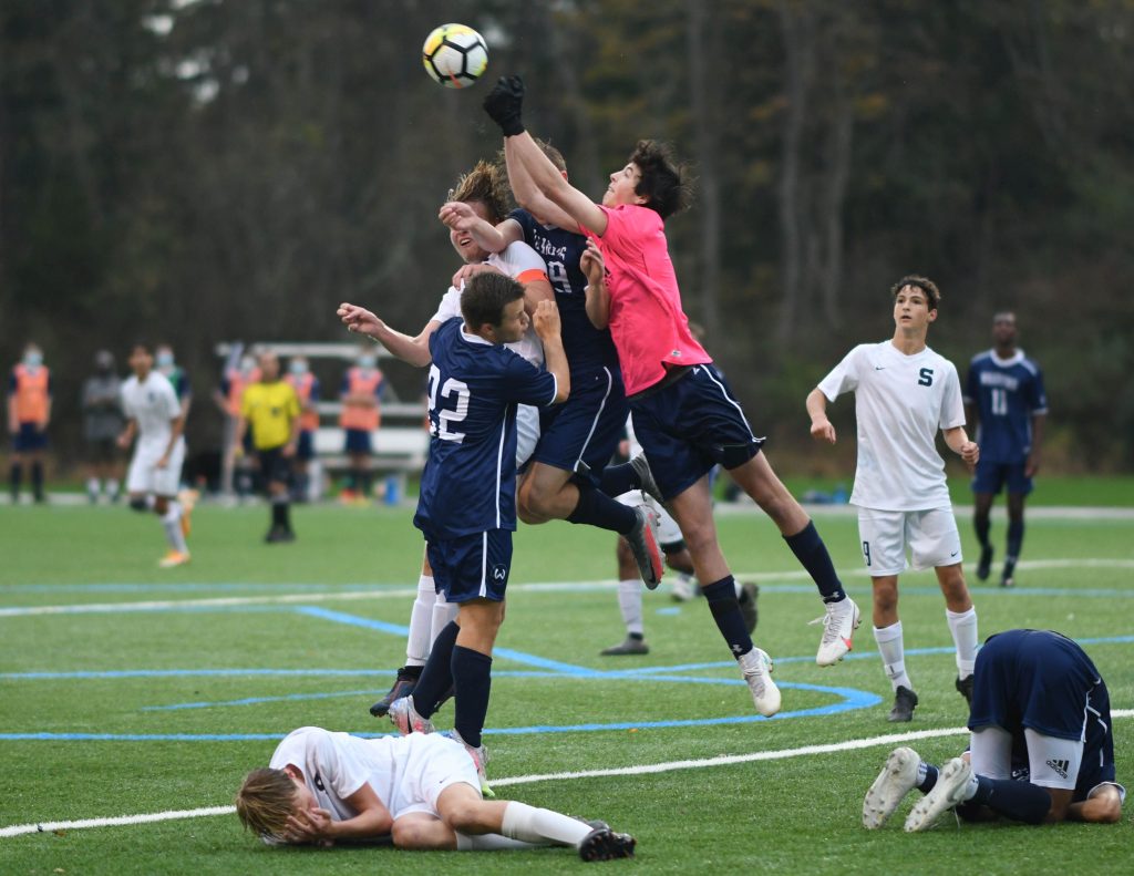 The blue-and-whites — including Jaden Mueller, Hunter Smith, Kyle Rotolo, Bruno Guiduli, Haran Eiger and Aaron Jaffe, all making their varsity debuts — never surrendered. But they’d dug themselves a deep hole, and their good chances were scooped up by the keeper.