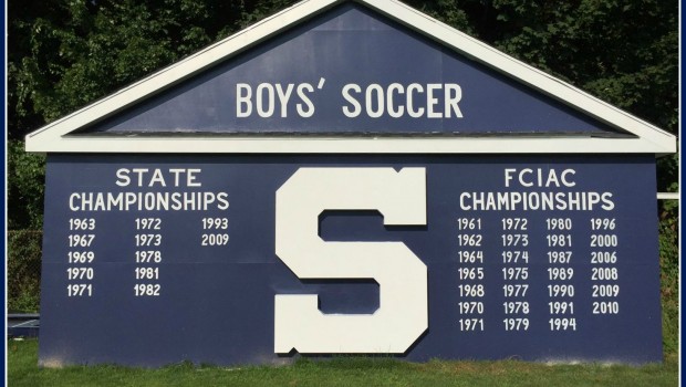 The shed — featuring a special Block “S” that pops out of the front — is painted Staples blue. The side facing The Hill features the dates of all 12 state championships, and 27 FCIAC winners. There is room for plenty more.