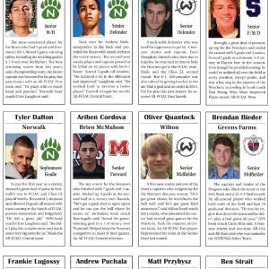 Jack Scott, Charlie Leonard and Andrew Puchala have been named to the 14-player Norwalk Hour All-Area first team. Yousef Shahin and Diego Alanis were among the 12 Honorable Mention selections. The Hour described Scott as “a leader [&hellip... Read More →