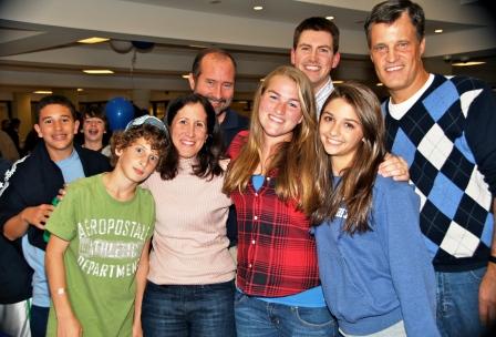 Virtually every varsity, JV and freshman player participated — many at tables with non-soccer friends, parents, grandparents, neighbors and teachers.  When 6 rounds of questions were over — ranging from the name of the orphan in “Slumdog Millionaire” (Jamal Malik) and how many men have walked on the surface of the moon (12) to how many ribs a human body has (24) and the distance between bases on a Little League field (60 feet) — the team of Jeff Krieger and his parents, Izzy Claveloux, Colleen McCarthy, Andrew Zold and Chuck Reach finished on top of the 200-plus crowd.
