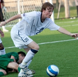 Former Staples captain and JV coach Ross McGibney ’07 headed in a 69th-minute goal yesterday, leading Southern Connecticut State University to a 1-0 shutout over Southern New Hampshire.
