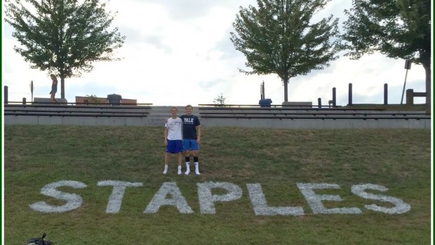Seniors Grant Sirlin and Graham Gudis, plus Cliff Sirlin P’16, spent Sunday afternoon carefully adding “Staples” to the base of The Hill. The white letters inspire the Wreckers from across the field — and serve as a reminder to visiting teams that they’re at one of the most legendary high school soccer sites in the country.