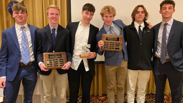 2021 banquet award winners (from left): Jacob Greenberger, Alex Kuster, Tim Liakh, Bruno Guiduli, Sam Vannart, Jackson Hochhauser.