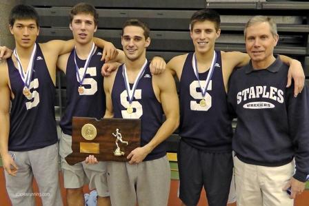 The Wreckers added the state open championship to their previous state LL and FCIAC titles. Staples’ 47 points easily outdistanced host Hillhouse (34), Greenwich (31), Trumbull (26) and Danbury (23). Last year, the blue-and-whites finished 2nd, behind the Hatters.