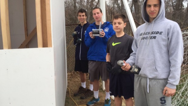 The new structure is a welcome addition to Loeffler Field. Thanks to project leader (and 2015 co-captain) Noah Schwaeber, and all the players who helped: senior Andrew Puchala; juniors Kenji Goto and Jack Zeldes, sophomores Luca Cocito, Ziggy Hallgarten, Sam Kantor, Jerrett Rende and Sebastian Wick; and freshmen Will Birch, Matt Engler, Steven Frost and Ian Weiler. And thanks of course to Chris O’Dell, for his tremendous contributions to this project.
