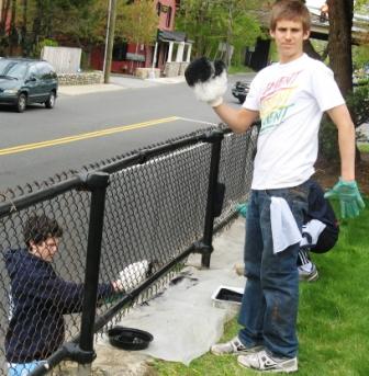 Three Staples soccer players — Dylan Hoy, Patrick Connolly and Zach Morrison — spent Saturday landscaping, repairing and painting a fence at the Saugatuck apartments operated by Homes With Hope.
