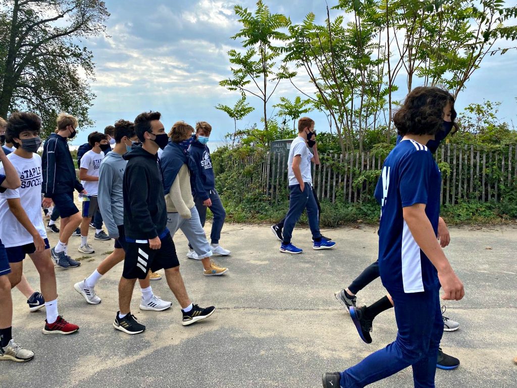 Over 50 varsity, reserve and freshman players took to the beach and trails at Sherwood Island State Park this morning. They were one of more than 100 athletic programs at every FCIAC school to participate in this year’s Alzheimer’s walk. Staples soccer raised nearly $5,500 — one of the highest totals of any team in the league.
