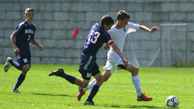 Patrick Beusse has a great game at both flank and central midfield versus McMahon. (Photo/Kim Lake)