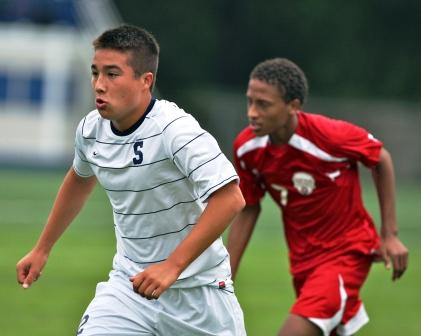 In the 16th minute Dylan Evans flicked a great ball to Esposito.  The junior striker hit Smith, who fired a long shot.  It rebounded out — and Esposito was there, for his 2nd straight score.