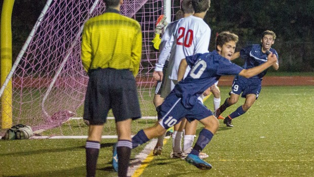 Denzel Robinson nets goal #3. Daniel Brill is right there too. (Photo/Kim Lake)