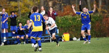 Bergonzi roared forward, power-heading the ball hard into the back of the net.  The hard-charging, Colgate-bound defender has threatened all year on plays like that.  Today it paid off — big-time.