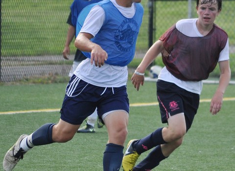 Co-captain Joe Greenwald (left) — shown here on the 1st day of tryouts — starts up top for Staples. Charlie Leonard (right) came on at midfield against Wethersfield. (Photo/Gerald Giannone)