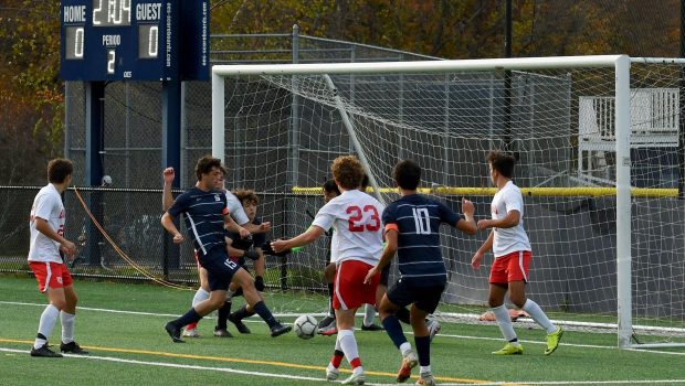 Head coach Dan Woog called the victory “a classic state tournament game. It was very hard fought on both sides. When it’s one-and-done, anything can happen. I thought our guys were very composed, and very patient. We had a game plan, and they stuck to it well. These are the kinds of matches you need to test your mettle. And every game from here on will be like this.”