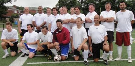 The Westport jUNe Day team. Chris Meinke is in the front row, kneeling at far left. Tom Henske is the goalkeeper, in the front row; Todd Coleman is next to him, on the right.