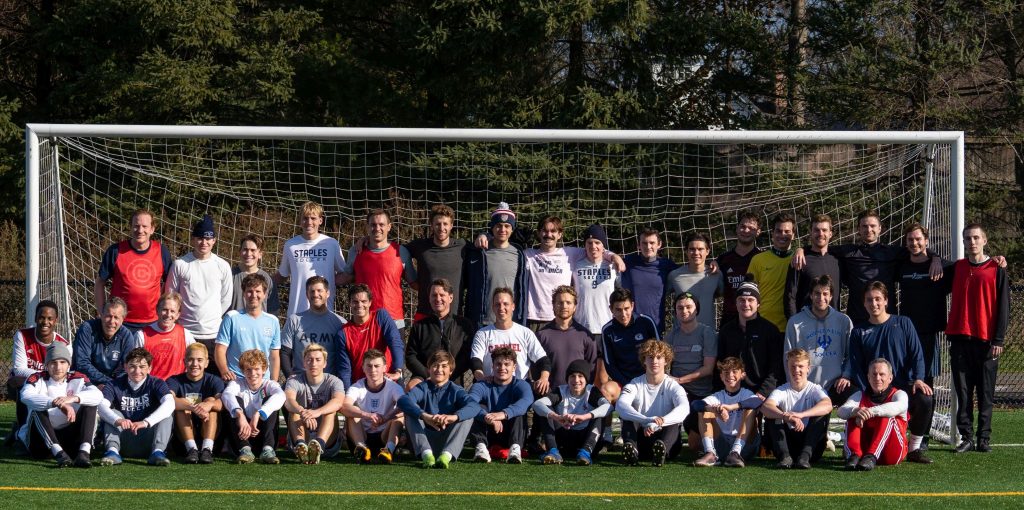 Dave Wilson ’75 — a former Staples captain, and standout at Dartmouth College — was the oldest player. A trio of varsity players — Zach Belzer, Luca Caniat and Alex Kuster, from the sophomore Class of ’25 — were the youngest.