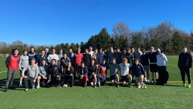 More than 3 dozen Staples soccer players — including 1974 co-captain Dave Wilson, and several current Wreckers — filled Wakeman Field Thanksgiving morning. Alumni parents watched too.