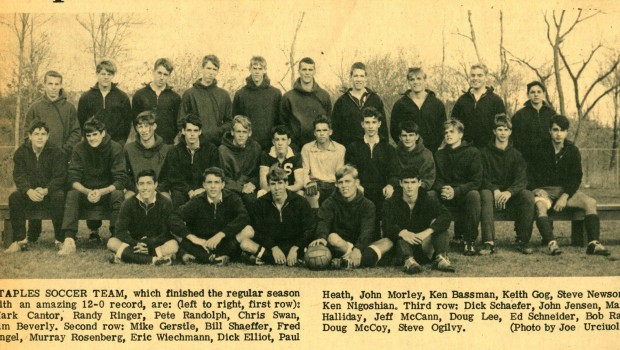 As the 2015 Staples soccer team passes the halfway point of the regular season — heading toward post-season — Fred Cantor ’71 looks back on legendary past tournaments. He’s reached out to alums from each decade, asking them to recall highlights of their championship runs. Here is the 1st installment of a 5-part series, exploring what it takes to become a Staples soccer champion.