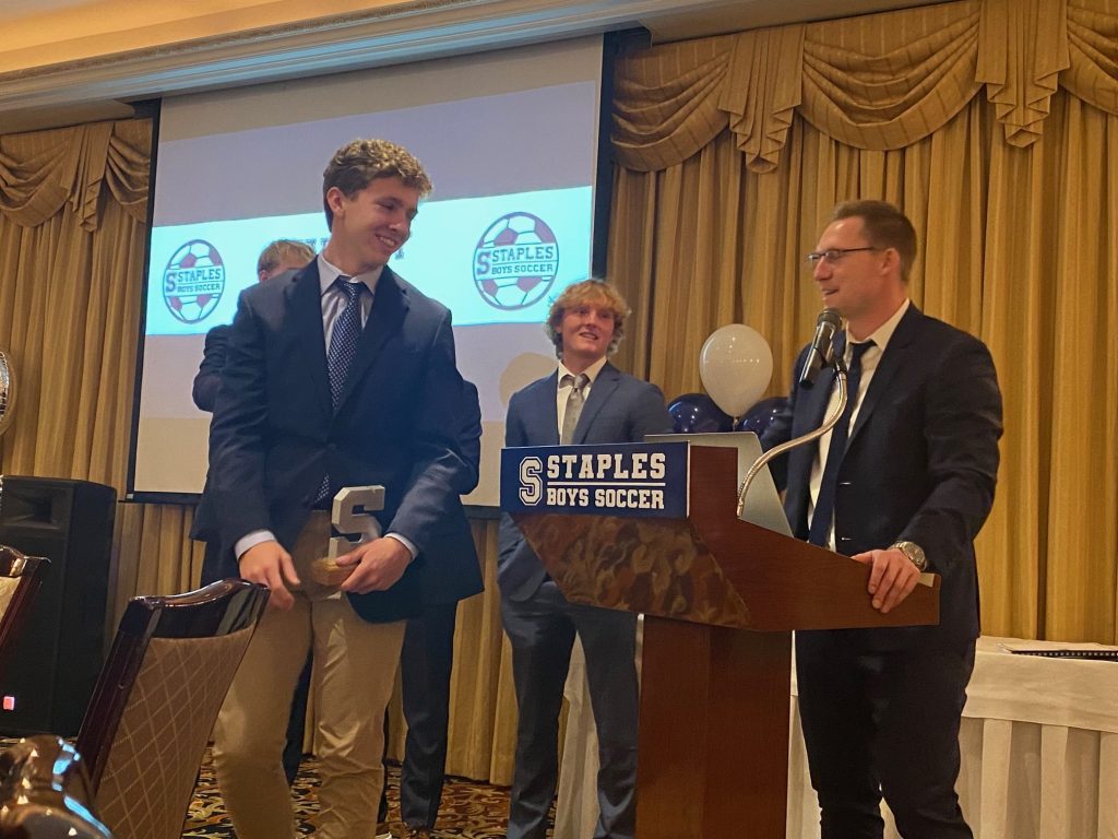 Over 30 varsity players received letters, certificates, gifts — and words of praise — from head coach Russell Oost-Lievense, at Staples soccer’s annual banquet last night.