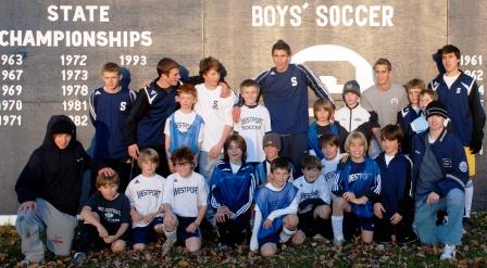 This year, they were “won” by the parents of a Westport Soccer Association team. This afternoon 8 Wreckers and 16 WSA U-9 and U-10 players — future Staples stars — got together for a kick-around session at Loeffler Field.