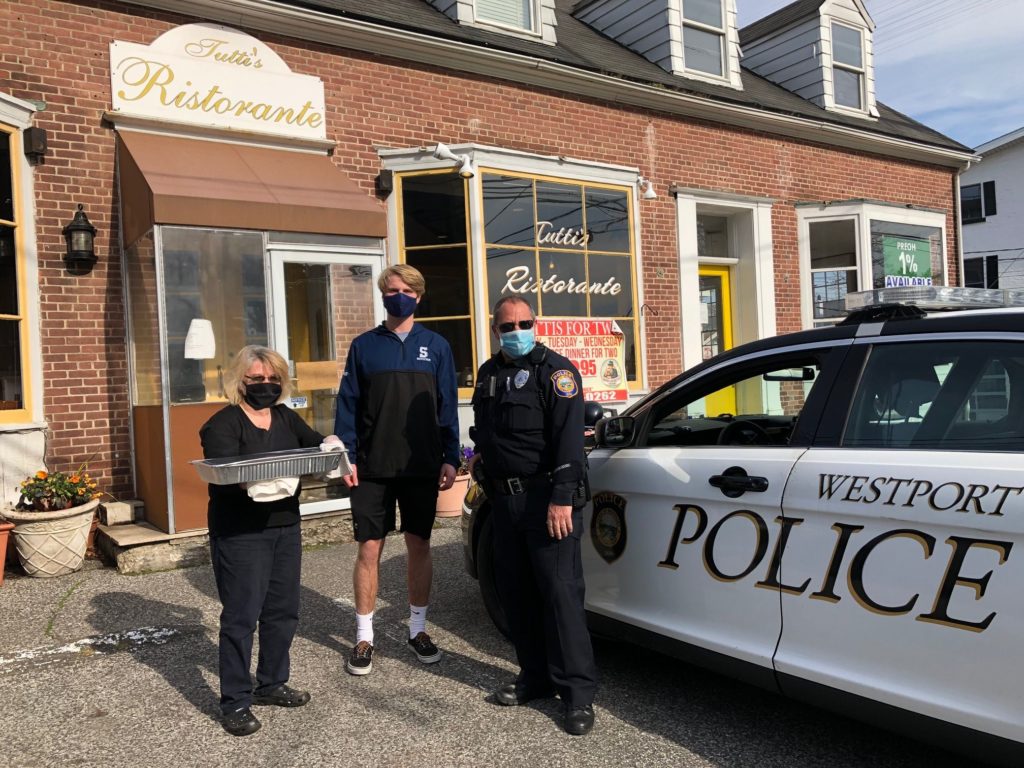 Staples soccer co-captain Jack Douglas, with Maria Funicello and Officer James Sullivan, at Tutti’s.