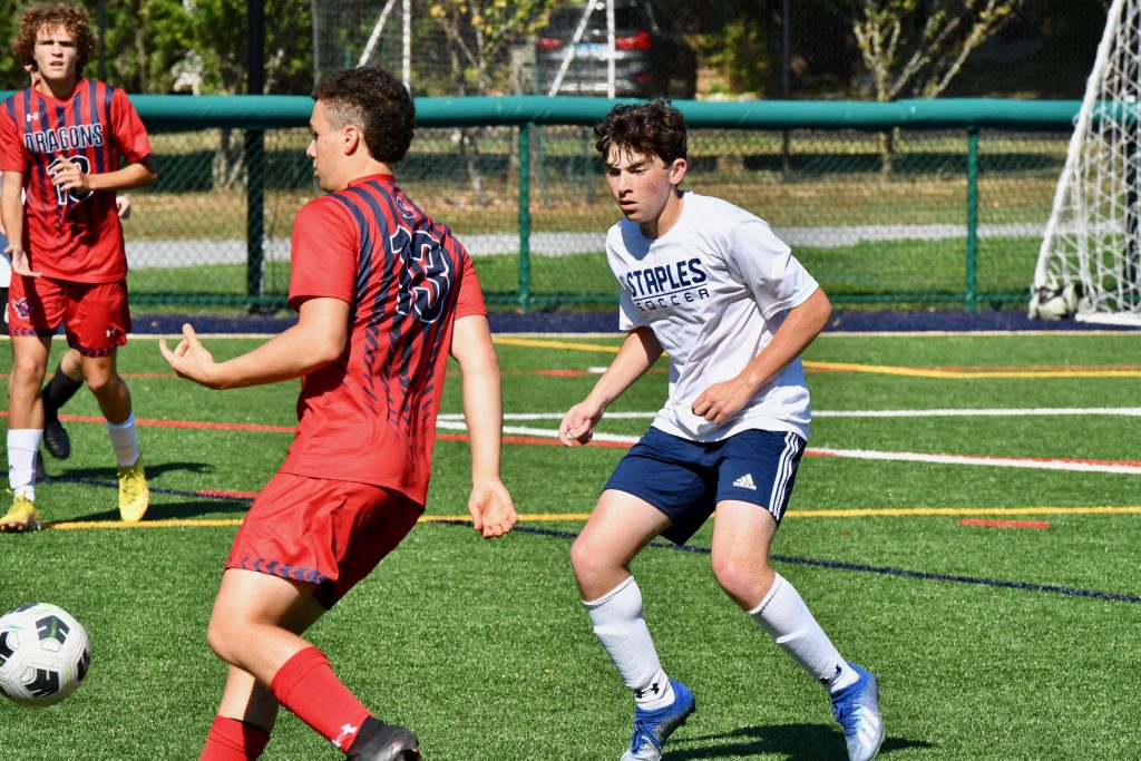 Just 5 days after their first tryout session, the 2022 Staples soccer team had their first preseason scrimmage. at Greens Farms Academy.