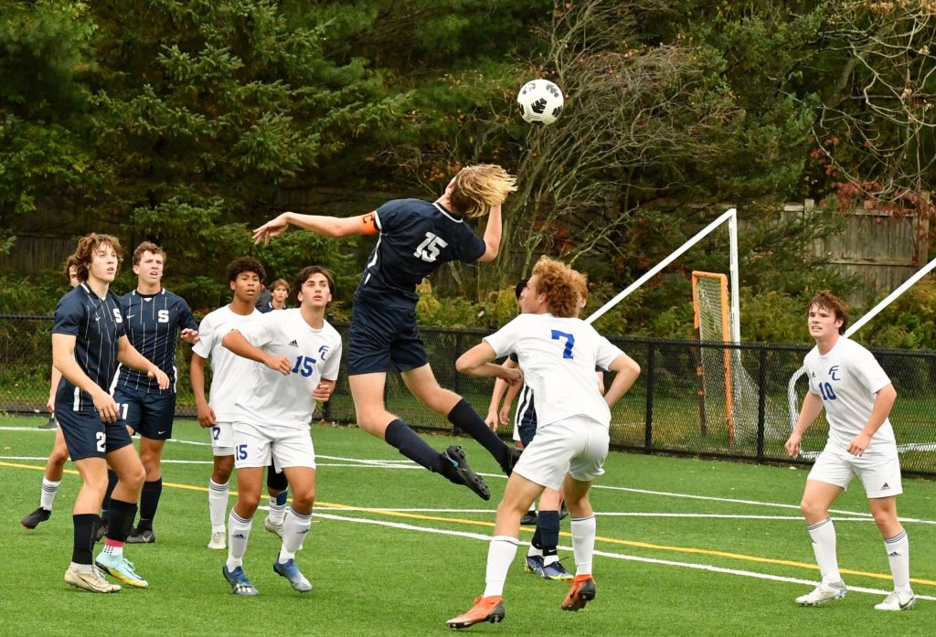 Hoke’s PK came after Avery Mueller drove into the box, and was fouled. The match had been even to that point — and continued that way to the end. Staples’ defense of Ben Douglas, Hunter Smith, Campbell Gerrard, Cole Lieberman, Santi Alfageme and Adam Syah, with Alex Laskin in front, played a tight, controlled and tough game. They trapped the visitors offside several times, with excellent communication and timing.
